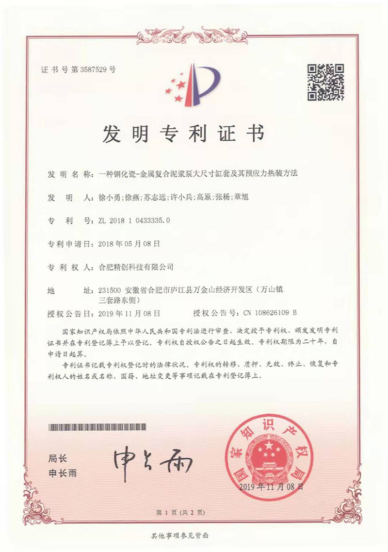 (2018發(fā)明專利)一種鋼化瓷-金屬復合泥漿泵大尺寸缸套及其預(yù)應(yīng)力熱裝方法